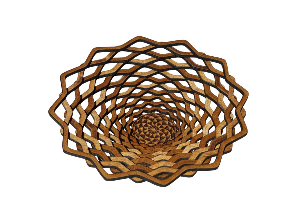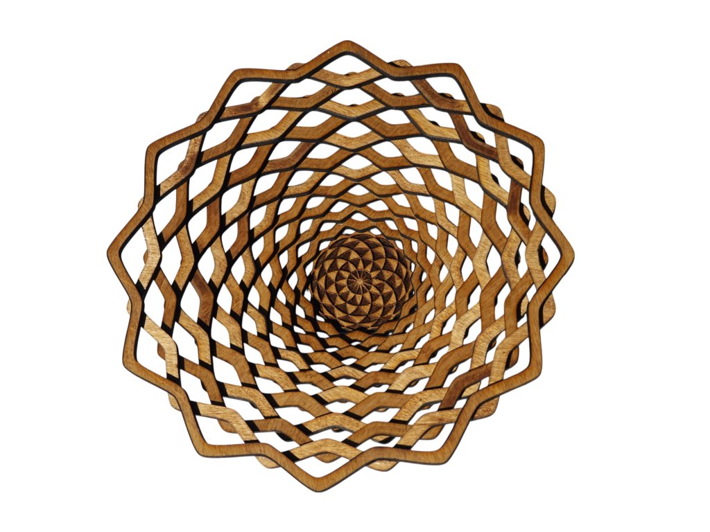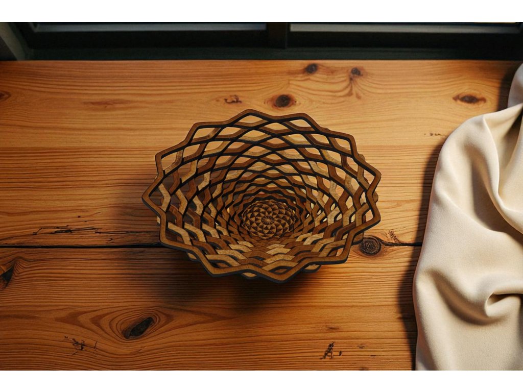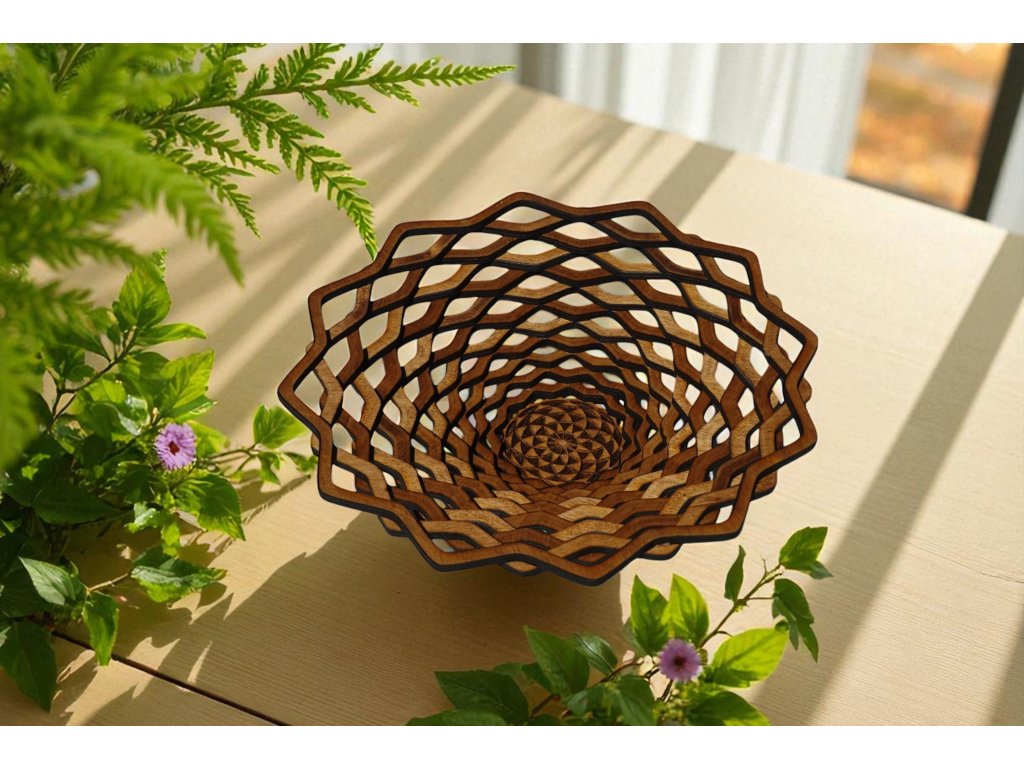 Tato elegantní mísa je vyrobena z kvalitní překližky a sestavena z precizně řezaných dílků. Díky svému vzdušnému tvaru působí jemně a moderně a přesto pevně drží tvar. Hodí se jako dekorativní prvek, stylová miska na ovoce nebo jako praktická nádoba na drobnosti. Skvěle vynikne na stole, poličce i v kuchyni.