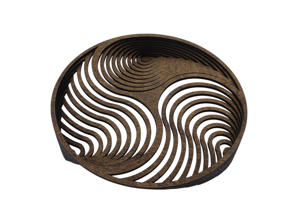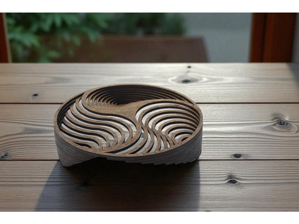 Tato elegantní mísa je vyrobena z kvalitní překližky a sestavena z precizně řezaných dílků. Díky svému vzdušnému tvaru působí jemně a moderně a přesto pevně drží tvar. Hodí se jako dekorativní prvek, stylová miska na ovoce nebo jako praktická nádoba na drobnosti. Skvěle vynikne na stole, poličce i v kuchyni.