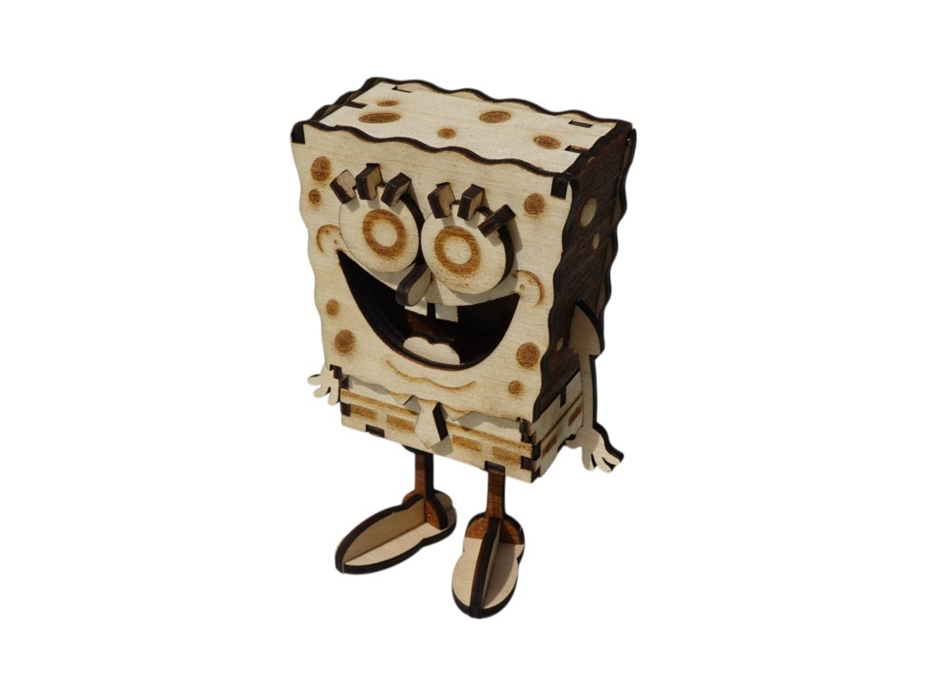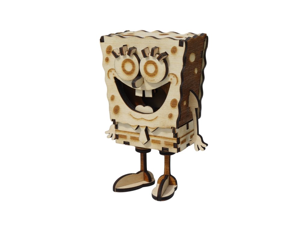 Dřevěná dekorace ve tvaru Spongeboba. Vtipný a originální doplněk na poličku, stůl nebo do dětského pokoje – potěší každého fanouška animovaných postaviček.