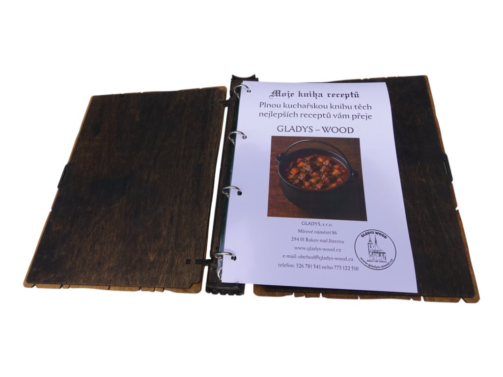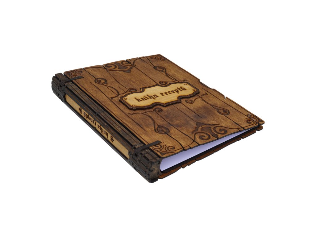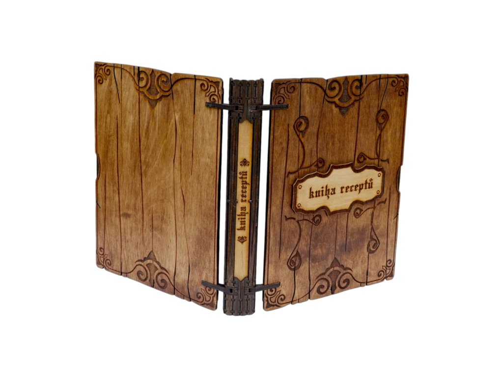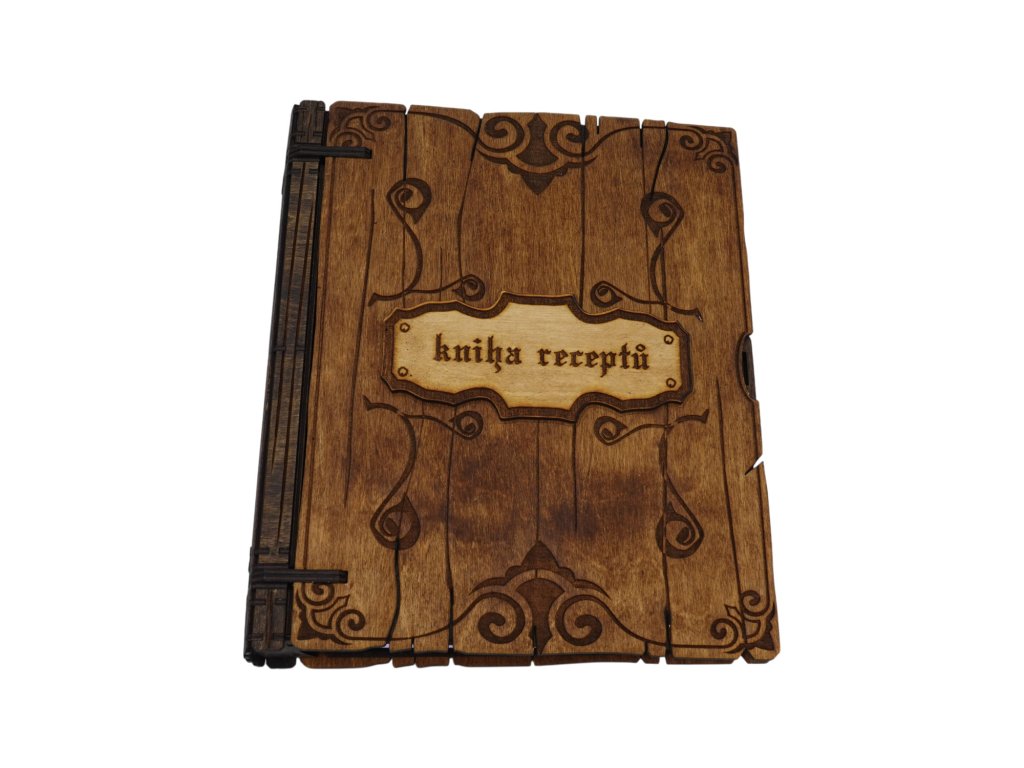 Praktická dřevěná knížka na recepty s originálním gravírováním. Skvělý pomocník pro každého, kdo si rád schovává své oblíbené kuchařské poklady.