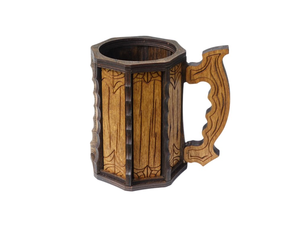 Rustikální dřevěný korbel inspirovaný středověkem. Skvělý jako stylová dekorace nebo netradiční dárek pro milovníky fantasy a historie či piva.