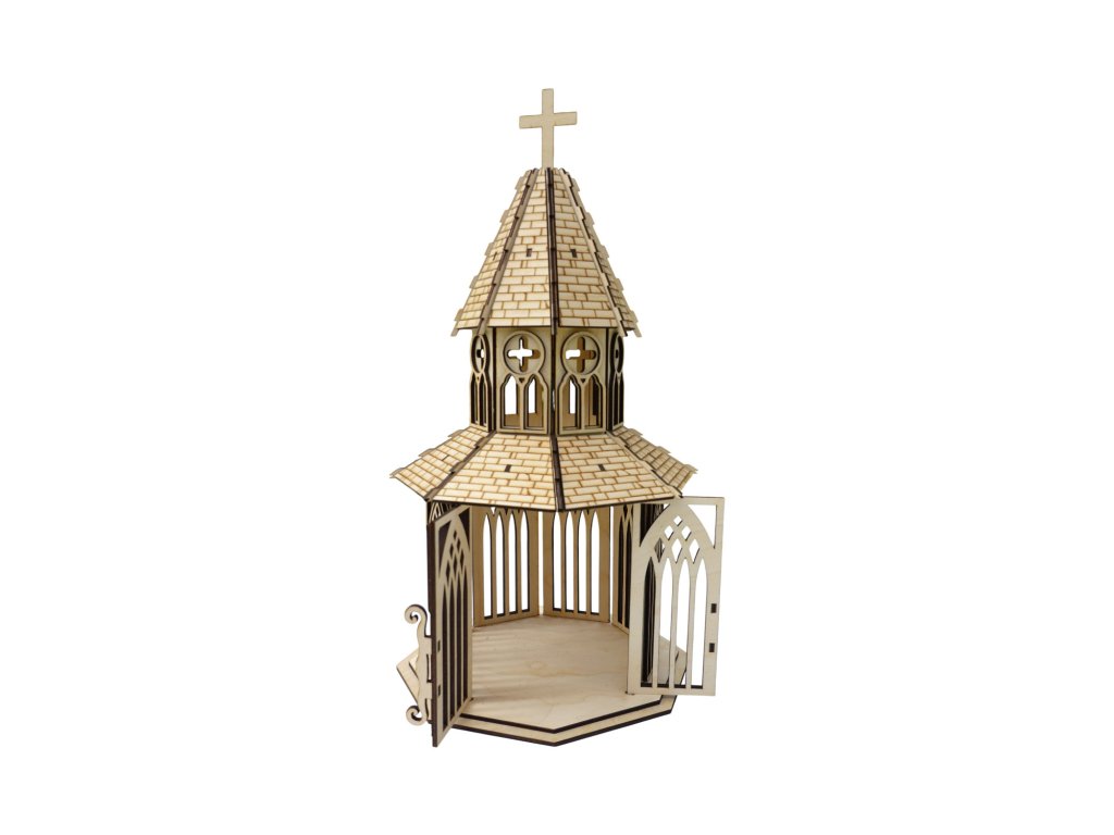 Zdrobnělina gotického kostela jako svícen na čajovou svíčku. Po rozsvícení vytváří krásnou atmosféru a světelné efekty skrz okna.