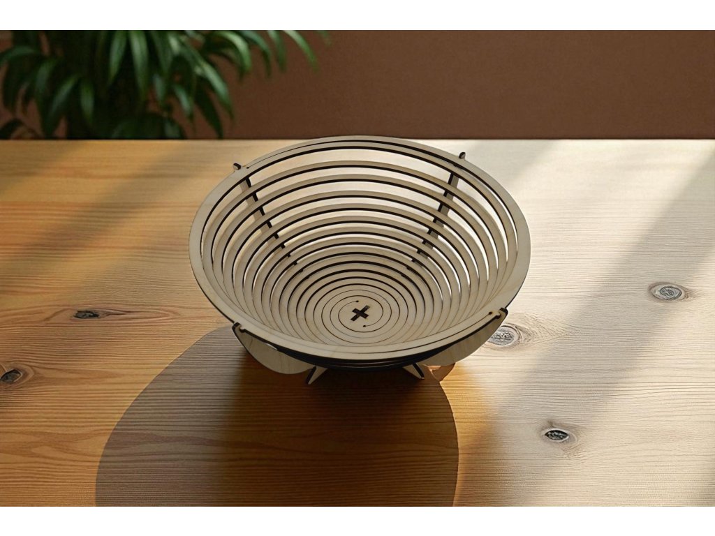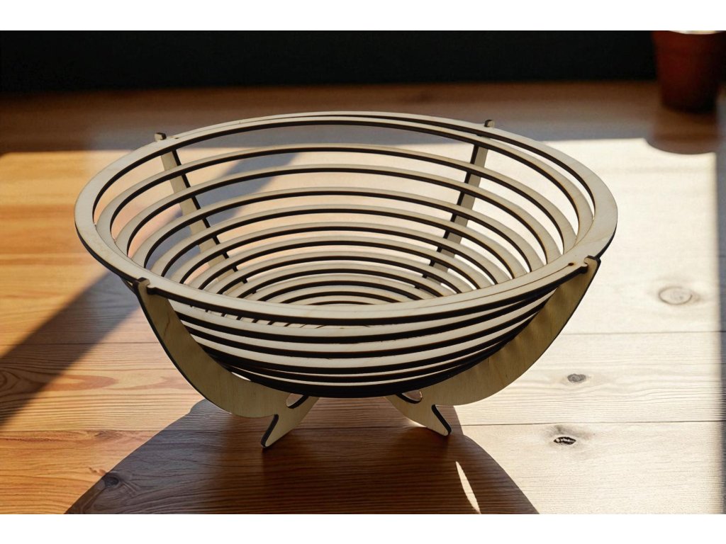 Tato elegantní mísa je vyrobena z kvalitní překližky a sestavena z precizně řezaných dílků. Díky svému vzdušnému tvaru působí jemně a moderně a přesto pevně drží tvar. Hodí se jako dekorativní prvek, stylová miska na ovoce nebo jako praktická nádoba na drobnosti. Skvěle vynikne na stole, poličce i v kuchyni.